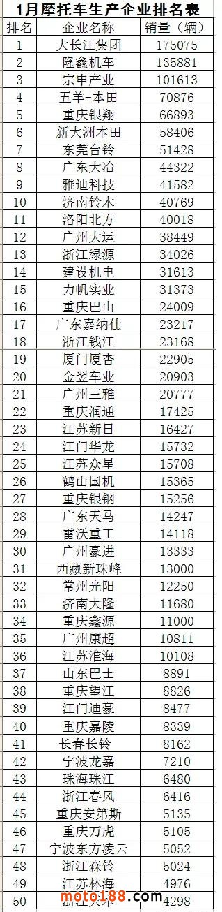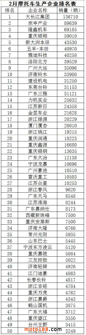 下面是2022年1、2月份生產(chǎn)企業(yè)銷量前五十排名表: