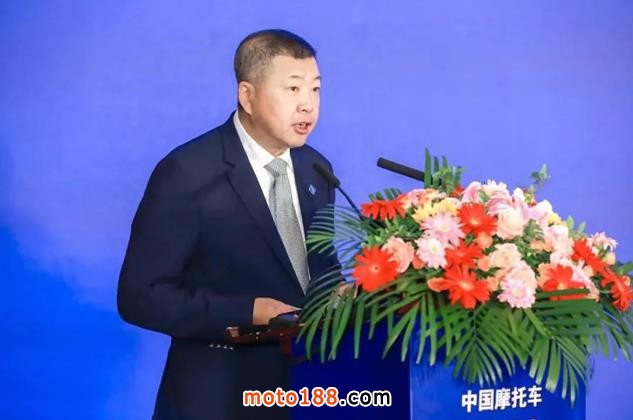 中國(guó)摩托車商會(huì)常務(wù)副會(huì)長(zhǎng)李彬在中國(guó)摩托車產(chǎn)業(yè)發(fā)展論壇上作主題報(bào)告  中國(guó)摩托車商會(huì)供圖