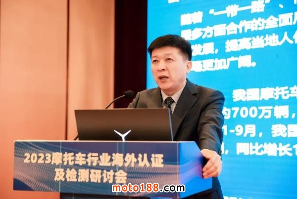 張洪波秘書長首先向各位代表介紹了我國摩托車外貿出口情況,根據中國摩托車商會的預測,2023年全年預計出口將超過1100萬輛,增長9%左右。“一帶一路”,RCEP, 東盟自由貿易區等多邊合作給摩托車出口帶來了新的機遇。我國摩托車出口結構將持續優化,出口產品持續提質升級。希望我們的企業,抓住這一歷史機遇,在國際上打造中國摩托車品牌形象,建立長遠的產品市場競爭力。