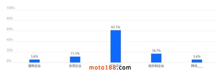 參與此次調(diào)查的企業(yè)主要為民營企業(yè),占比61.1%,與目前摩托車行業(yè)的企業(yè)性質(zhì)結(jié)構(gòu)基本相符。
