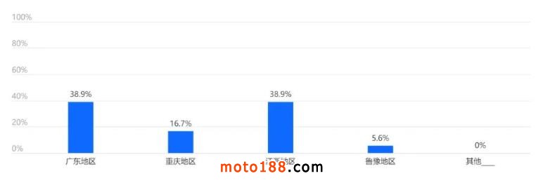 參與此次調(diào)查的摩托車企業(yè)主要集中在廣東地區(qū)和江浙地區(qū),占比均為38.9%,其次為重慶地區(qū)(16.7%),與目前摩托車產(chǎn)業(yè)集中度基本相符。