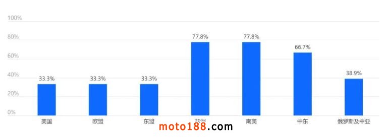 非洲和南美為企業(yè)主要出口市場,占比均為77.8%,其次是中東市場,占比66.7%