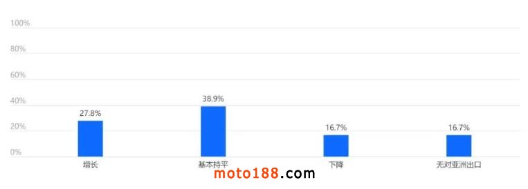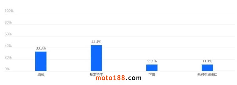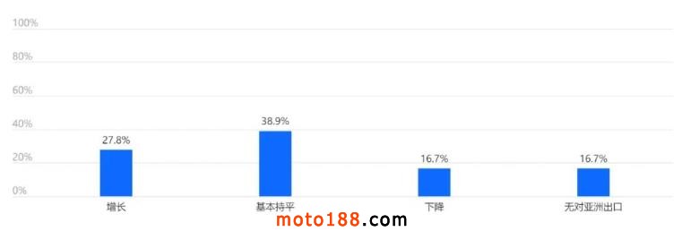 44.4%的企業(yè)預計下半年對亞洲出口將基本持平。