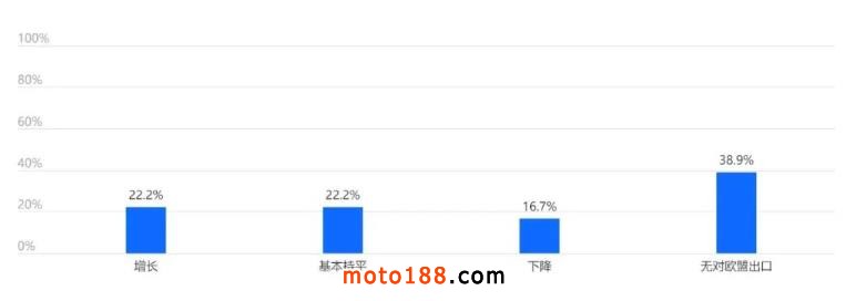27.8%的企業(yè)預計下半年對歐盟出口將有所增長,另有27.8%的企業(yè)預計下半年對歐盟出口將基本持平。