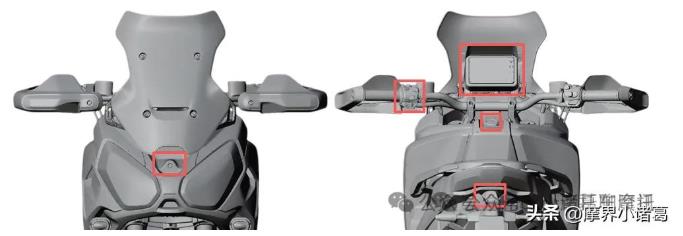 除了這兩個主要的優勢設計之外,這輛車的其他配置也一應俱全,預計會有ABS、TCS的加入,智能配置方面結合手把上的多功能按鍵應該是一塊多功能TFT儀表支持投屏等功能,而且還可以看到有前后攝像頭,同時采用無鑰匙啟動。