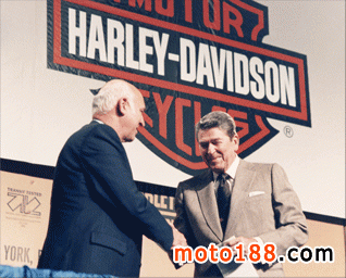 羅納德•里根總統(tǒng)、比爾•克林頓總統(tǒng)、喬治•布什總統(tǒng)和喬治•沃克•布什總統(tǒng)都曾經(jīng)參觀哈雷戴維森的制造工廠并對哈雷戴維森的榜樣作用贊不絕口。克林頓總統(tǒng)訪問哈雷戴維森在賓夕法尼亞州約克的工廠時稱贊到:“你們生產(chǎn)了激動人心的產(chǎn)品并將它銷往全球”。布什總統(tǒng)和哈雷戴維森工廠的工人談話時說道:“哈雷戴維森是美國企業(yè)家精神的杰出典范”。