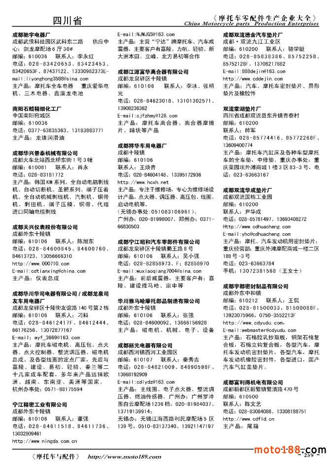 2010版摩托車配件生產企業大全