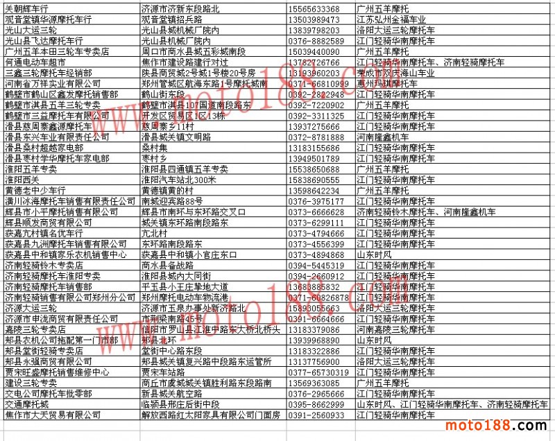 河南省整車經銷商名錄