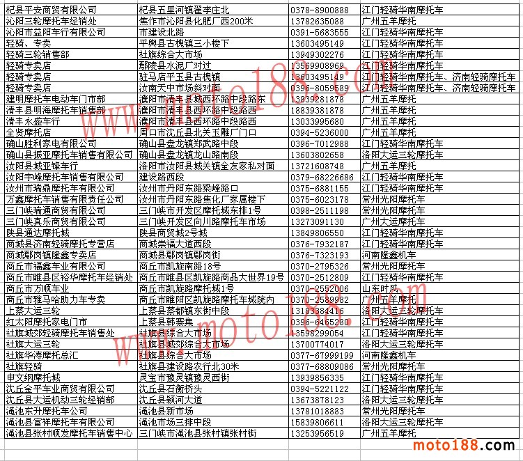 河南省整車經(jīng)銷商名錄