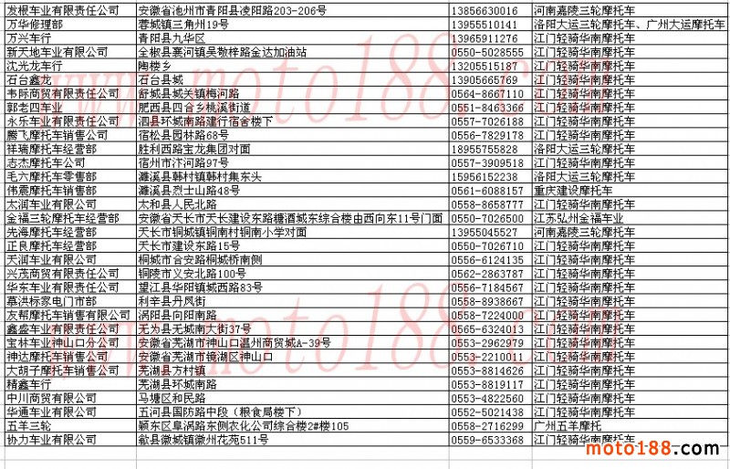 安徽省整車經銷商名錄