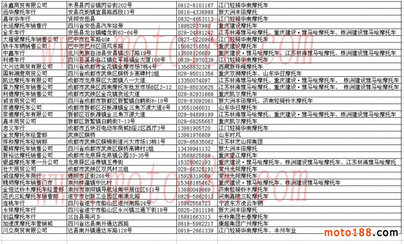 四川省摩托車經銷商