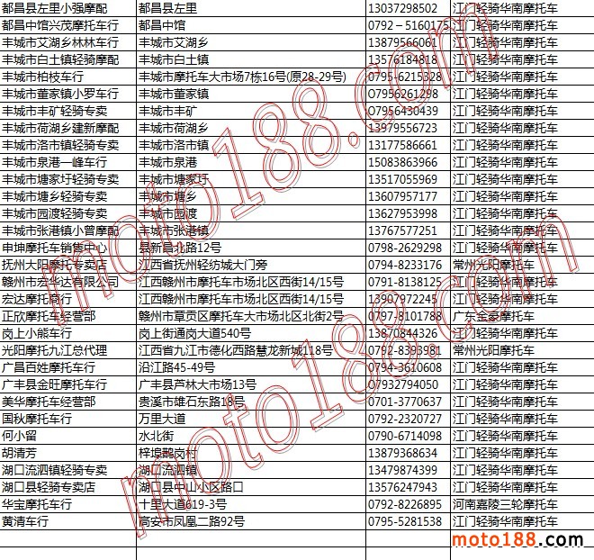 江西省摩托車整車經銷商名錄