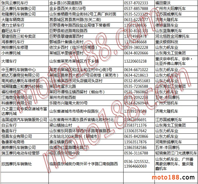 山東省摩托車整車經銷商名錄