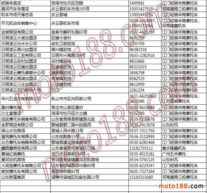 山東省摩托車整車經銷商名錄