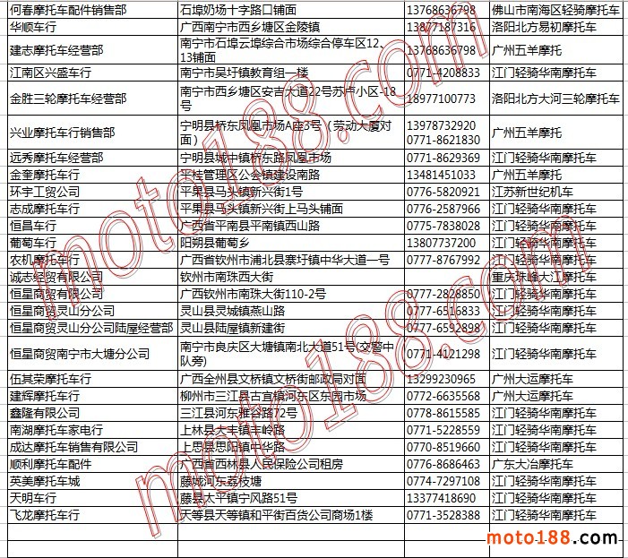 廣西省摩托車整車經銷商