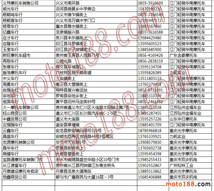 貴州省摩托車整車經銷商名錄