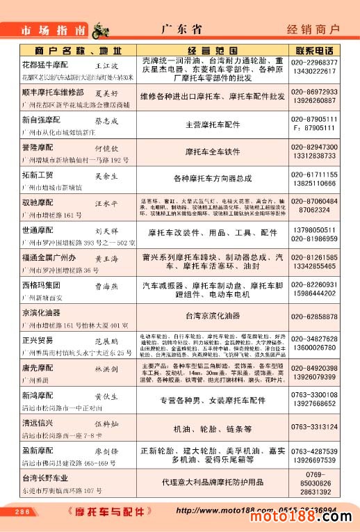 廣東省摩配經銷商戶