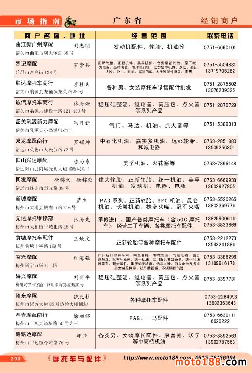廣東省摩配經銷商戶