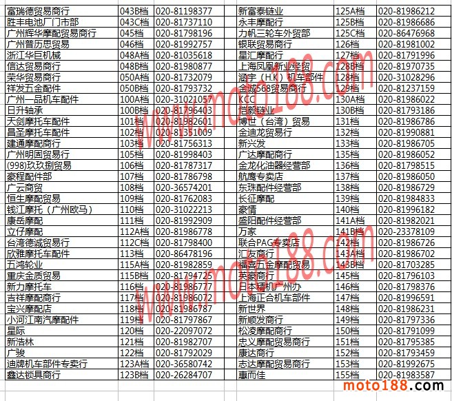 廣州白云摩配市場經銷商名錄