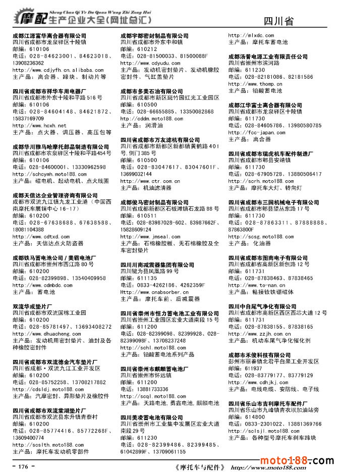 《摩托車與配件生產企業大全》打造行業信息的航母