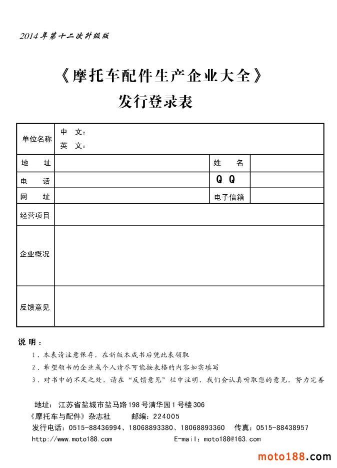 三年發(fā)行承諾的履行,并不是意味著我們工作的結(jié)束,而是我們?yōu)樾袠I(yè)服務(wù)的又一新開始。從今年下半年開始我們就已在籌劃對(duì)《摩托車與配件生產(chǎn)企業(yè)大全》進(jìn)行第十一次的升級(jí),這本書從有償銷售到無償發(fā)放的3年,期間我們一直在研究和探索怎樣更全面、更便捷的展示廠家信息。