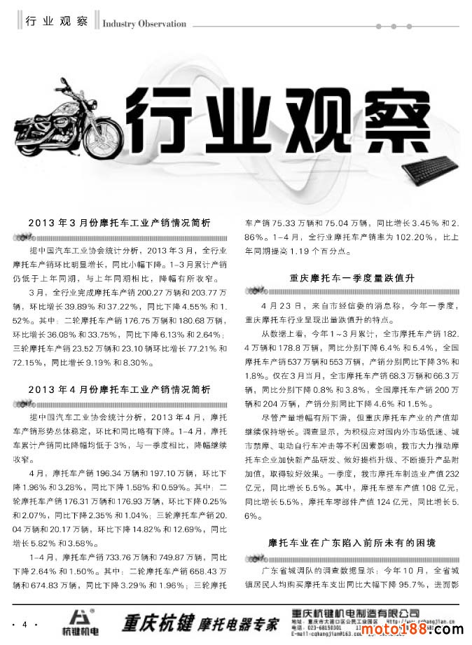 “鋤禾日當(dāng)午,汗滴禾下土,誰知盤中餐,粒粒皆辛苦。”有了這樣的辛苦,才會(huì)有收獲的喜悅。《摩托車與配件》之所以在全行業(yè)不景氣的大環(huán)境下,還能保持較高的增長速度也正是因?yàn)橛辛诉@樣的付出,天道酬勤。