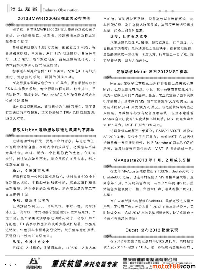 “鋤禾日當午,汗滴禾下土,誰知盤中餐,粒粒皆辛苦。”有了這樣的辛苦,才會有收獲的喜悅。《摩托車與配件》之所以在全行業(yè)不景氣的大環(huán)境下,還能保持較高的增長速度也正是因為有了這樣的付出,天道酬勤。