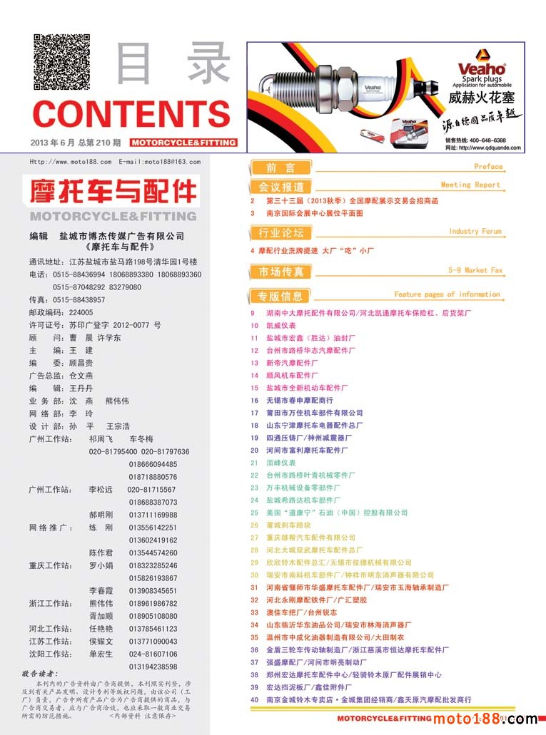 時節即將進入盛夏了,南方的天氣也越來越熱,國內的內銷市場,尤其是南方地區的市場將轉成淡季。根據我們今年的出刊計劃,我們從這個月也就是六月份開始至八月份每月出一期雜志。本期雜志是在六月中旬出刊;7月雜志將在七月上旬出刊,同時在中旬還會出刊今年的第三期《摩托車與配件外貿報》即夏季版(十月出刊秋季版);八月初出刊8月版;八月底至九月初出刊9月上半期雜志,十月中下旬出刊9月下半期雜志。請大家注意我們的出刊日期,及時 到我們的發行點領取。我們也會在moto188網站的公告欄及時通知大家雜志發貨的具體時間。