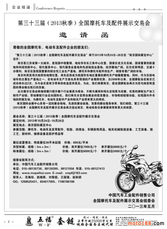 第三十三屆(2013秋季)全國摩配展示交易會邀請函