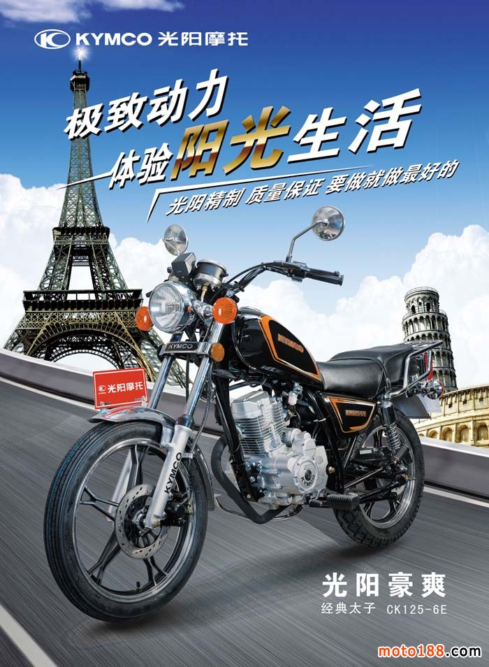 光陽(yáng)本著 "Better than Best" 的企業(yè)宗旨,正式向全世界宣布,我們期望以提供KYMCO優(yōu)質(zhì)的動(dòng)力商品與技術(shù)服務(wù)為使命,啟動(dòng)人類(lèi)的生活動(dòng)力,讓擁有國(guó)際品牌的KYMCO帶領(lǐng)您進(jìn)入便利、安全、休閑、娛樂(lè)的動(dòng)力世界。