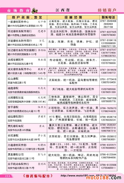 本書的下一個版本《西北市場指南》將在秋季全摩會結束后著手編纂,我們通過各種途徑來采集第一手準確信息,這本書在2014年春季西安全摩會首發。需要強調的是,本書之后的版本,部分地區會有所調整。比如上一個版本是《三北市場指南》,新升級版本分為《西北市場指南》和《華北、東北市場指南》,《西北市場指南》主要省份由陜、甘、寧、青、新、藏六省區,企業總數二千多家,具體以成書為準。