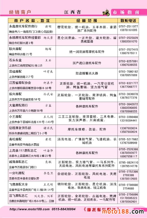 繼2010年出版的《中國摩托車配件市場指南》系列叢書第一版本《華東市場指南》已經三年了,三年來華東市場是全國摩配市場變化最大的市場,以往的市場有的不復存在,有的搬遷形成新的市場,有的市場被部分改造,市場在縮小,如果僅從這些已經形成市場的角度來看華東市場規模在嚴重的收縮,剛開始我們打算編新版《華東市場指南》時,初步估似乎要減少不少單位,但等到匯總后,華東市場的總的經銷商數目不僅沒有減少,甚至比上一個版本還有所增加,總數有2800多家企業,因而書的內容比以前更充實,有不少以前不在市場上的企業,通過資料匯總,又經過逐戶電話校對,這本書的準確率非常高,書中的信息都是2013年采集的。