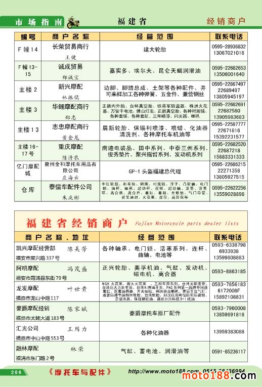 繼2010年出版的《中國摩托車配件市場指南》系列叢書第一版本《華東市場指南》已經三年了,三年來華東市場是全國摩配市場變化最大的市場,以往的市場有的不復存在,有的搬遷形成新的市場,有的市場被部分改造,市場在縮小,如果僅從這些已經形成市場的角度來看華東市場規模在嚴重的收縮,剛開始我們打算編新版《華東市場指南》時,初步估似乎要減少不少單位,但等到匯總后,華東市場的總的經銷商數目不僅沒有減少,甚至比上一個版本還有所增加,總數有2800多家企業,因而書的內容比以前更充實,有不少以前不在市場上的企業,通過資料匯總,又經過逐戶電話校對,這本書的準確率非常高,書中的信息都是2013年采集的。