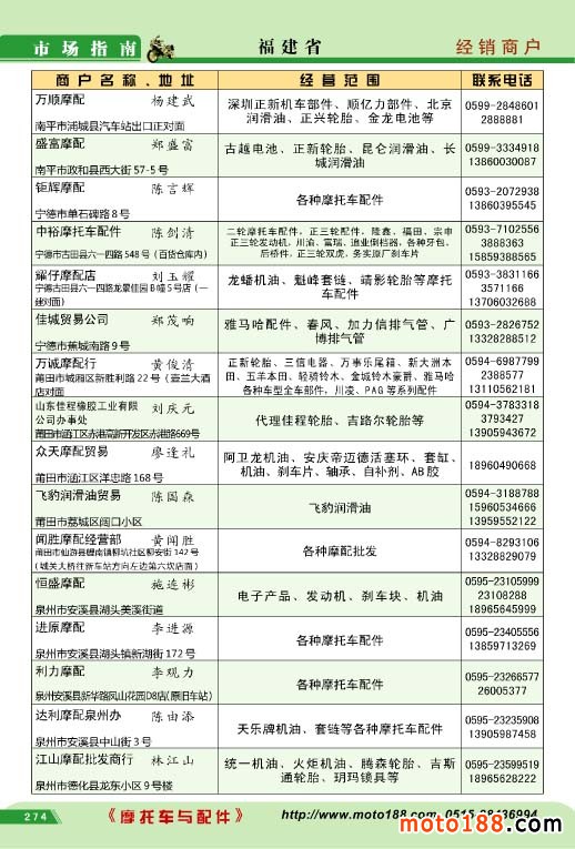 本書的下一個版本《西北市場指南》將在秋季全摩會結(jié)束后著手編纂,我們通過各種途徑來采集第一手準(zhǔn)確信息,這本書在2014年春季西安全摩會首發(fā)。需要強調(diào)的是,本書之后的版本,部分地區(qū)會有所調(diào)整。比如上一個版本是《三北市場指南》,新升級版本分為《西北市場指南》和《華北、東北市場指南》,《西北市場指南》主要省份由陜、甘、寧、青、新、藏六省區(qū),企業(yè)總數(shù)二千多家,具體以成書為準(zhǔn)。