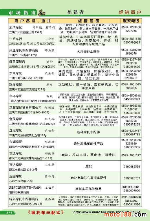 繼2010年出版的《中國摩托車配件市場指南》系列叢書第一版本《華東市場指南》已經三年了,三年來華東市場是全國摩配市場變化最大的市場,以往的市場有的不復存在,有的搬遷形成新的市場,有的市場被部分改造,市場在縮小,如果僅從這些已經形成市場的角度來看華東市場規模在嚴重的收縮,剛開始我們打算編新版《華東市場指南》時,初步估似乎要減少不少單位,但等到匯總后,華東市場的總的經銷商數目不僅沒有減少,甚至比上一個版本還有所增加,總數有2800多家企業,因而書的內容比以前更充實,有不少以前不在市場上的企業,通過資料匯總,又經過逐戶電話校對,這本書的準確率非常高,書中的信息都是2013年采集的。