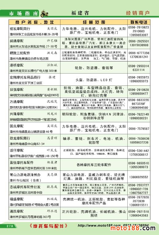 本書的下一個版本《西北市場指南》將在秋季全摩會結束后著手編纂,我們通過各種途徑來采集第一手準確信息,這本書在2014年春季西安全摩會首發(fā)。需要強調的是,本書之后的版本,部分地區(qū)會有所調整。比如上一個版本是《三北市場指南》,新升級版本分為《西北市場指南》和《華北、東北市場指南》,《西北市場指南》主要省份由陜、甘、寧、青、新、藏六省區(qū),企業(yè)總數(shù)二千多家,具體以成書為準。