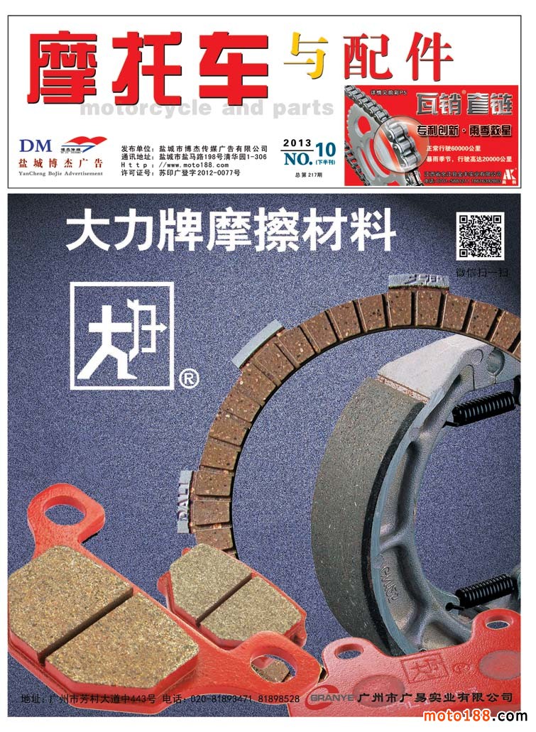 同時還有今年新編的第四期《中國摩托車配件外貿報》,本報除在省會市場發行之外,在廣州和重慶的市場都設有報架,讓客戶隨手取閱。本次報紙和雜志將會一起派送。今年的全摩會《會刊》仍然由中汽組委會派發,在進門口領參展證的同時,領取《會刊》,我們只負責制作,組委會負責發行。