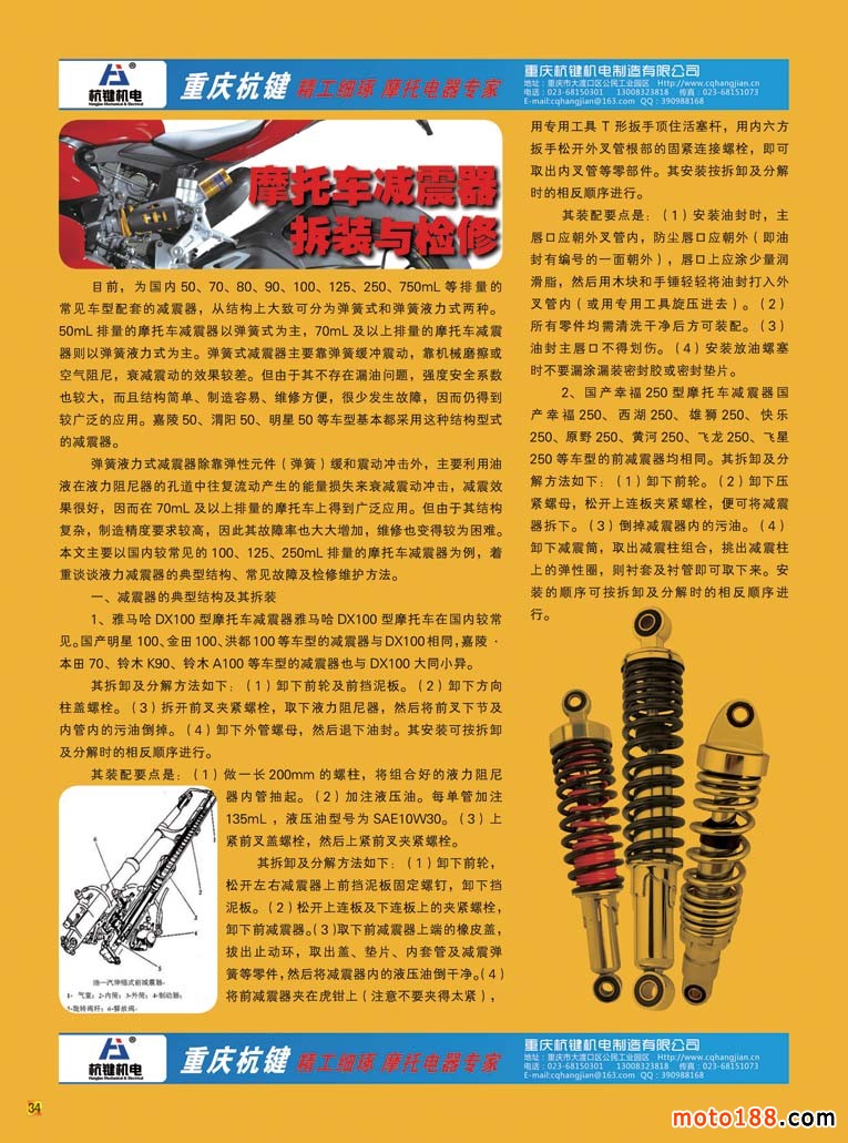 和這些歷經風雨在摩配行業堅守的同仁們一樣,我們也煉得自信與從容。新的一年我們雜志以全新的面貌出現,我們采用全彩色出刊,同時將我們的服務對象橫向延伸。與我們的同仁一樣,立足摩配,橫向拓展,內外兼修,努力做好雜志,除了提升外觀品相,更是注重在內容上的變化。每期雜志用十頁左右的文字來廣角掃描我們摩托車配件行業的子行業,這一期推出的是減震器專題。上一期化油器專題出刊以后,不光受到市場的歡迎,有些企業還把我們的雜志認真地收藏保存好,因為有不少信息對于他們的生產、經營都有一定幫助。對我們來說也是迫使我們更深入地了解摩配的各個子行業。自從前年摩托車行業開始強制提高排放標準以后,我們片面地認為化油器這個行業會被電噴完全取代,這個產業是不是已經步入到夕陽期?通過編排我們較深刻的對這一產業有所了解,制造之地一派欣欣向榮的景象,在我們摩托車業需求量減少之時,我們的制造廠已經在通機領域干得風生水起,有不少廠即使擴大產能也供不應求。當地地方政府也從這個產業得到許多實惠,一個雙贏的局面,這就是產業的正能量。其實市場如何變幻,總有一批做得好的龍頭企業在努力工作,打造自己的名牌,眼光不僅僅局限面前,更多地瞄準了國際市場。中國制造能漂洋過海,被國外消費者所接受,正是這樣一批行業精英為國家和民族在努力。