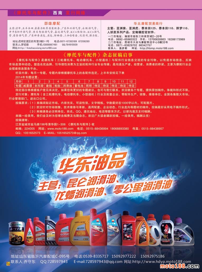 我們編排的過(guò)程也是學(xué)習(xí)的過(guò)程,我們?yōu)檫@些成功企業(yè)鼓舞吶喊,把他們推薦給市場(chǎng),讓更多的消費(fèi)者能得到性?xún)r(jià)比高的產(chǎn)品,也是希望他們能把某一行業(yè)帶向新的高度。我們尤其歡迎在生產(chǎn)和市場(chǎng)第一線的人員,把你們的經(jīng)驗(yàn)、技術(shù)總結(jié)出來(lái),讓行業(yè)更多的人來(lái)分享。我們希望你們能向我刊積極投稿,一經(jīng)錄用,稿酬從優(yōu)。我們最希望的文章內(nèi)容是來(lái)自一線有關(guān)行業(yè)市場(chǎng)動(dòng)態(tài)的,字?jǐn)?shù)在一千字左右的短文;尤其歡迎有關(guān)配件、配套和互換方面的實(shí)用知識(shí)類(lèi)文章,讓雜志變成教科書(shū),同時(shí)增加了消費(fèi)者對(duì)企業(yè)所制造的產(chǎn)品在使用和功能上有新的了解。