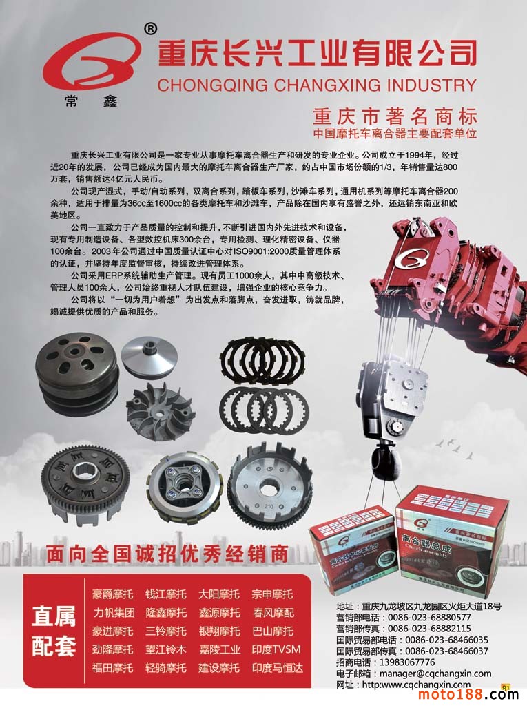 和這些歷經風雨在摩配行業堅守的同仁們一樣,我們也煉得自信與從容。新的一年我們雜志以全新的面貌出現,我們采用全彩色出刊,同時將我們的服務對象橫向延伸。與我們的同仁一樣,立足摩配,橫向拓展,內外兼修,努力做好雜志,除了提升外觀品相,更是注重在內容上的變化。每期雜志用十頁左右的文字來廣角掃描我們摩托車配件行業的子行業,這一期推出的是減震器專題。上一期化油器專題出刊以后,不光受到市場的歡迎,有些企業還把我們的雜志認真地收藏保存好,因為有不少信息對于他們的生產、經營都有一定幫助。對我們來說也是迫使我們更深入地了解摩配的各個子行業。自從前年摩托車行業開始強制提高排放標準以后,我們片面地認為化油器這個行業會被電噴完全取代,這個產業是不是已經步入到夕陽期?通過編排我們較深刻的對這一產業有所了解,制造之地一派欣欣向榮的景象,在我們摩托車業需求量減少之時,我們的制造廠已經在通機領域干得風生水起,有不少廠即使擴大產能也供不應求。當地地方政府也從這個產業得到許多實惠,一個雙贏的局面,這就是產業的正能量。其實市場如何變幻,總有一批做得好的龍頭企業在努力工作,打造自己的名牌,眼光不僅僅局限面前,更多地瞄準了國際市場。中國制造能漂洋過海,被國外消費者所接受,正是這樣一批行業精英為國家和民族在努力。