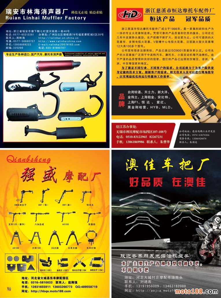 內90 瑞安市林海消聲器廠/浙江慈溪市恒達摩托車配件廠/強盛摩配廠/澳佳車把廠