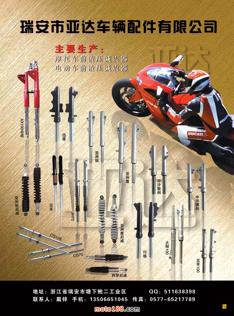 我們雜志在五月份對版面進行了微調,摩托車、電動車、通機等按一定的比例選材編排《摩托車與配件》的外延已經展開,涉及到我們配件行業的相關企業。通過我們對中南地區及華東市場的走訪,我們更加感覺我們調整的及時,緊貼市場。目前摩托車行業在華東地區變化非常大,有昨日黃花之感覺,一些我們以前了解的大戶,曾經門庭若市,現在卻門庭冷落車馬稀,有的不堪門面費用,已轉到倉儲用大篷車送貨銷售。相比而言,中南地區市場變化不算大,在經營數量上還略有增加。摩托車整車市場變化超過了我們配件市場,除了摩托車整車十大品牌還依然屹立,一些小品牌在市場已經很少能看見。這些撤走的小品牌車的門店,變成了電動車和三輪車的門面了,有的甚至是電動四輪車。一些企業稱這些車是新能源汽車,能源肯定是新的,但是作為汽車也稍微寒磣了一點吧。盡管如此,有的地區已經呈現出將要成市的勢頭,但愿這類車在二三線城市不要遭受摩托車的命運。