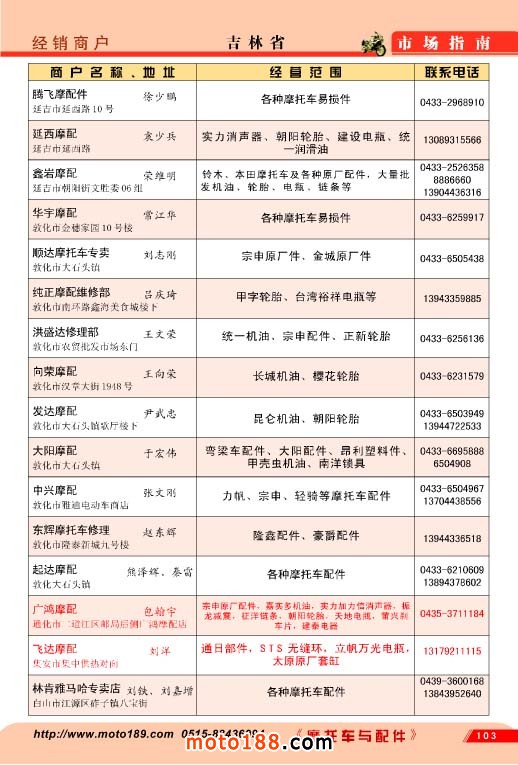 下版為《中國摩托車配件·西南市場指南》,包括重慶、云南、貴州、四川及陜西省四省一市地區(qū),收錄二千二百多家配件銷售企業(yè)匯總成書,本書所有資料將是我刊在2011年冬及2012年春收集匯總更新整理的最新最準(zhǔn)確的市場第一手資料。