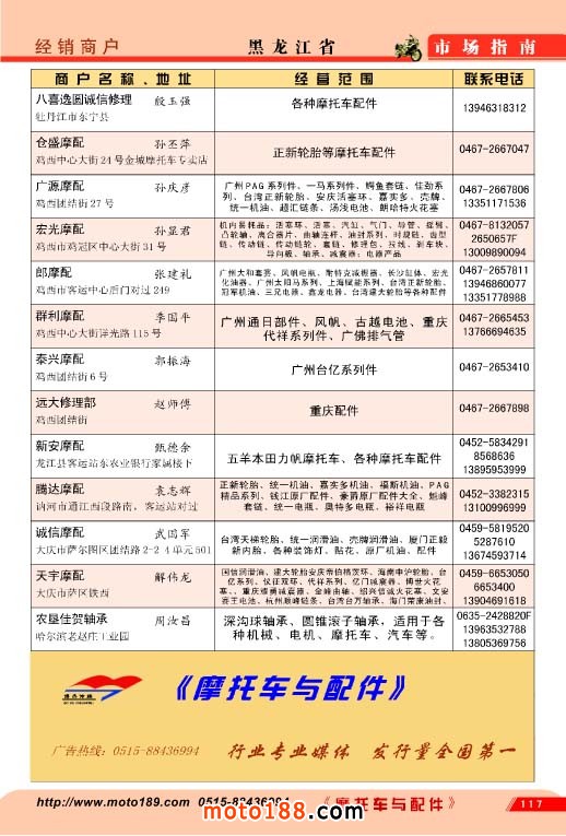 目前本系列書籍已成功出版了三個系列,由于我們的真心付出,市場的反響也越來越好,本來我們計劃在全國摩配會前截稿,由于廣告突破了我們的計劃,我們提前一個月出版,本書 的信息量也比以往大,廣告量如不控制將會爆發性增長,書太厚不方便大家的使用,因而我們 毅然提前停止了廣告的征集。