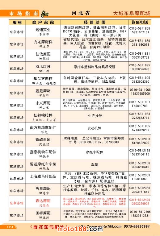 歷時半年,橫跨十三省市的《北方市場指南》今天終于成書,奉獻給行業企業,這本書是我們《中國摩托車配件市場指南》的第三個分冊,也是工作量和難度最大的一本書,為了資料的準確,我們雜志社全體內部工作人員,在炎熱的夏季里,孜孜不倦地工作,先后冒著酷暑兵分三 路去西北、華北、東北的省份,由于夏季暑運高峰,交通也十分不便,有時為了趕路,甚至乘了三十多個小時無空調的大巴車。今天看到這本混合我們汗水和心血的《北方市場指南》我們感覺這份果實更加不同尋常,彌加珍貴。