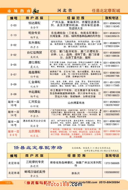 下版為《中國(guó)摩托車配件·西南市場(chǎng)指南》,包括重慶、云南、貴州、四川及陜西省四省一市地區(qū),收錄二千二百多家配件銷售企業(yè)匯總成書(shū),本書(shū)所有資料將是我刊在2011年冬及2012年春收集匯總更新整理的最新最準(zhǔn)確的市場(chǎng)第一手資料。