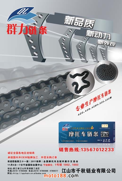2012年春,行業最具影響力的“春季全摩會”4月27日在重慶召開,我們將在特殊的時間,特 殊的地域,特殊的市場,推出獨具特色的《中國摩托車配件·西南市場指南》,為您的經營提供方向,為您的騰飛插上翅膀。