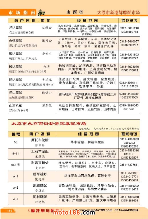歷時半年,橫跨十三省市的《北方市場指南》今天終于成書,奉獻給行業企業,這本書是我們《中國摩托車配件市場指南》的第三個分冊,也是工作量和難度最大的一本書,為了資料的準確,我們雜志社全體內部工作人員,在炎熱的夏季里,孜孜不倦地工作,先后冒著酷暑兵分三 路去西北、華北、東北的省份,由于夏季暑運高峰,交通也十分不便,有時為了趕路,甚至乘了三十多個小時無空調的大巴車。今天看到這本混合我們汗水和心血的《北方市場指南》我們感覺這份果實更加不同尋常,彌加珍貴。