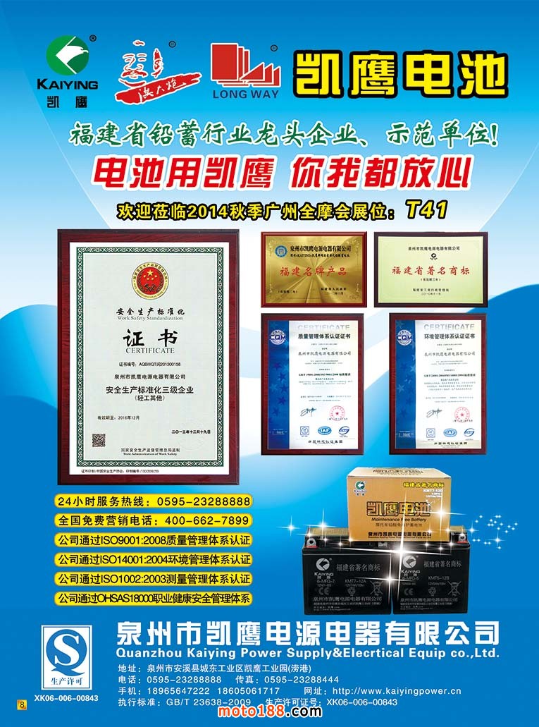 全摩會還有2個多月就在廣州召開了,這次會上我們將奉獻給大家的是第12次升級的《中國摩托車配件生產企業大全》在這本書中。我們新增了目錄銷售排名前10-20名的摩托車整車生產企業,二輪電動車生產企業、燃油和電動三輪生產企業的名錄,方便大家在增加經營的同時,有所選擇和參考。《華南市場指南》含廣東和海南兩省市場經銷商戶的資料,其中的廣州白云區羅沖圍一帶的市場是用中英文雙語編排,方便外商的閱讀;其余例行的十一期雜志和外貿報紙;另外還有部分華東和西北地區的新的市場指南(已經在南京和西安會議首發)。如果有興趣從事新能源汽車業務的企業也可拿到《新能源車》雜志。這是我們新出的雜志,具體可去moto189網站上瀏覽到全部的內容,在此不多贅述。記住廣州再見,帶上你的名片到1075展位領書去!