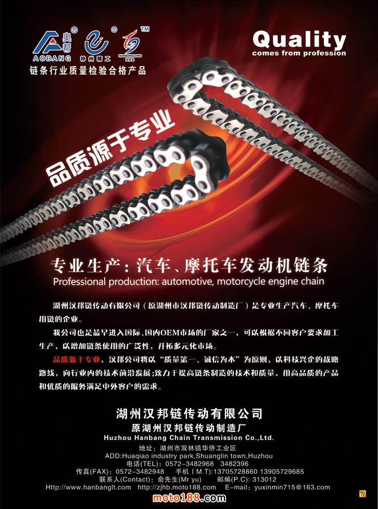 行業大型展會——第三十四屆秋季廣州全摩會會展期間,由于雜志廣告版面較多,原定出版的配件套缸專題和三輪車行業的相關信息專題移至下期出刊。